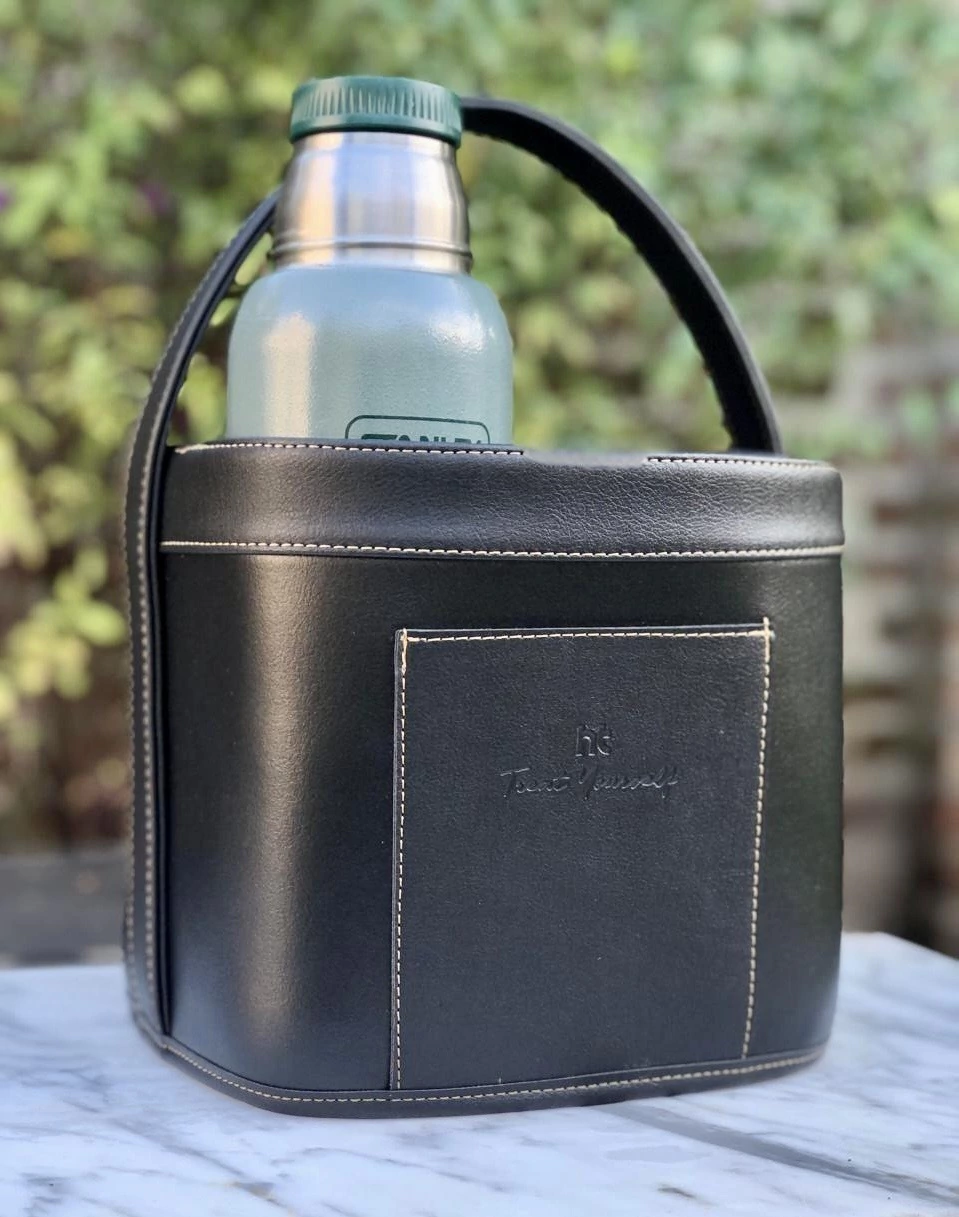 La Canasta Matera Wild está confeccionada en cuero ecológico. 100% cruelty free. Es resistente, fácil de limpiar y práctica. Su interior forrado en tela impermeable con bolsillo interno y división permite que cada cosa tenga su luga. Ademas cuenta con detalles en costura y bolsillo externo. Incluye un set de dispensers (Yerba + Azucar) a tono. Su tamaño es ideal para llevar termo + set de latas o dispenser + todo lo necesario para disfrutar de unos ricos mates. Es apta termo Stanley 1,5 litro.