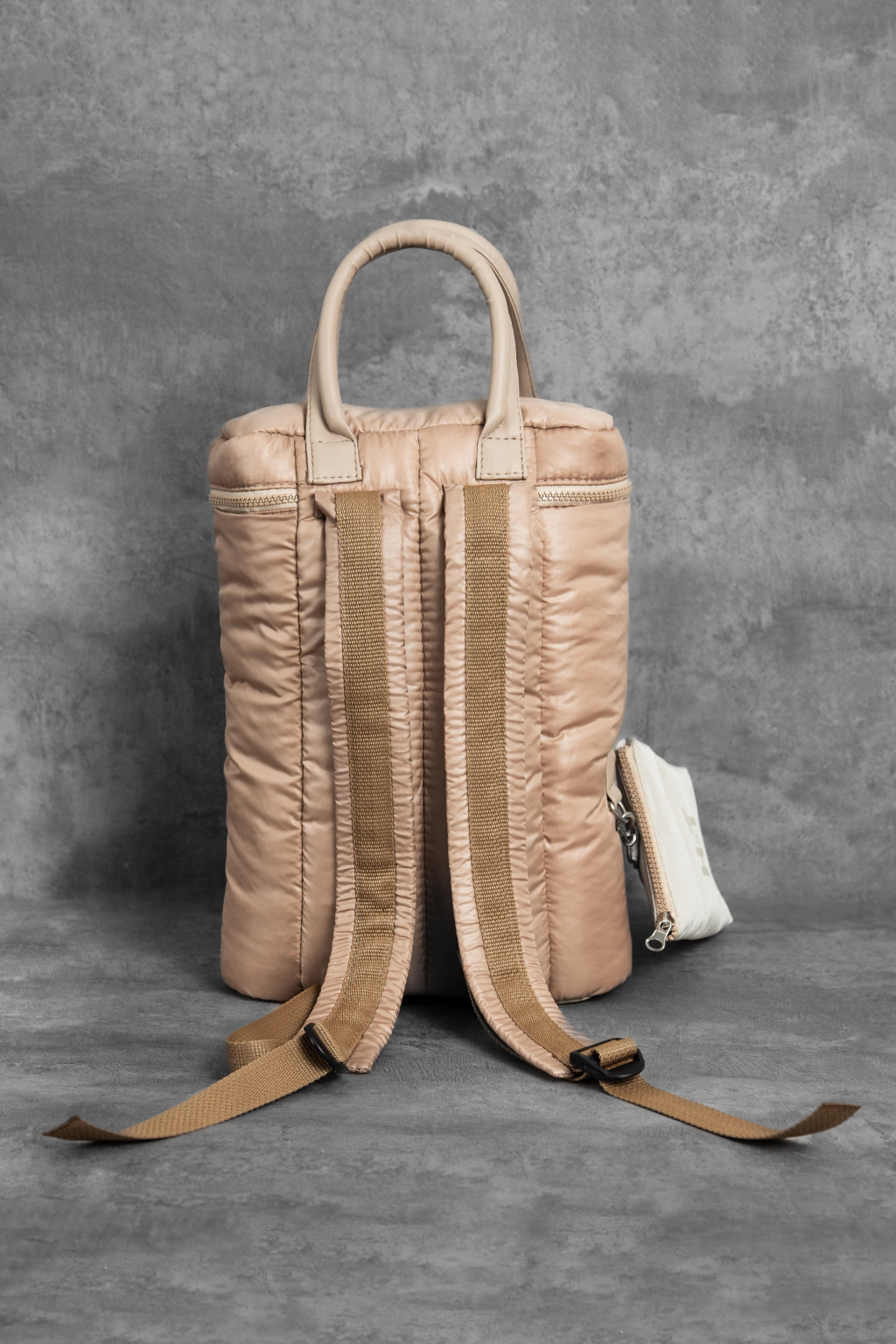 La Mochila Matera Bubble está confeccionada en tela de avión 100% cruelty free, lo que la hace ultra liviana, resistente, fácil de limpiar y muy práctica. Su diseño matelasseado es moderno y adaptable a cualquier estilo. Cuenta con un acceso con cierre diente de perro reforzado al tono y tiracierres al tono para una apertura rápida. La correa regulable es hiper resistente y tiene un bolsillo externo frontal perfecto para accesorios. El interior está forrado en tela impermeable.